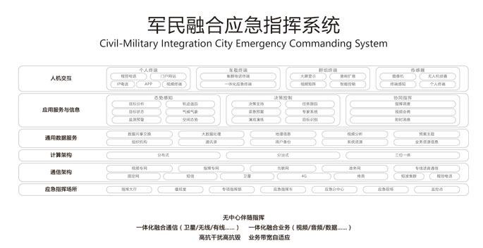 一体化资源融合:综合空间态势,卫星雷达声纳、气象信息、敌我装备、视频指挥、舆情、展望的一体化系统,盘算机、移动终端多方法泛起,实现全要素资源信息的周全获取,融合处置惩罚、统一分发和按需展示。
